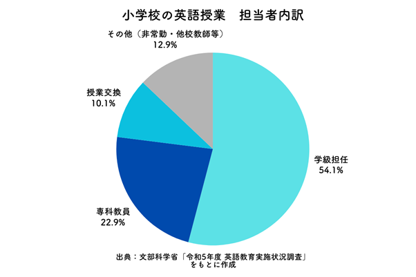 文部科学省の調査によると、小学校全体で英語を担当している教員の内訳は、